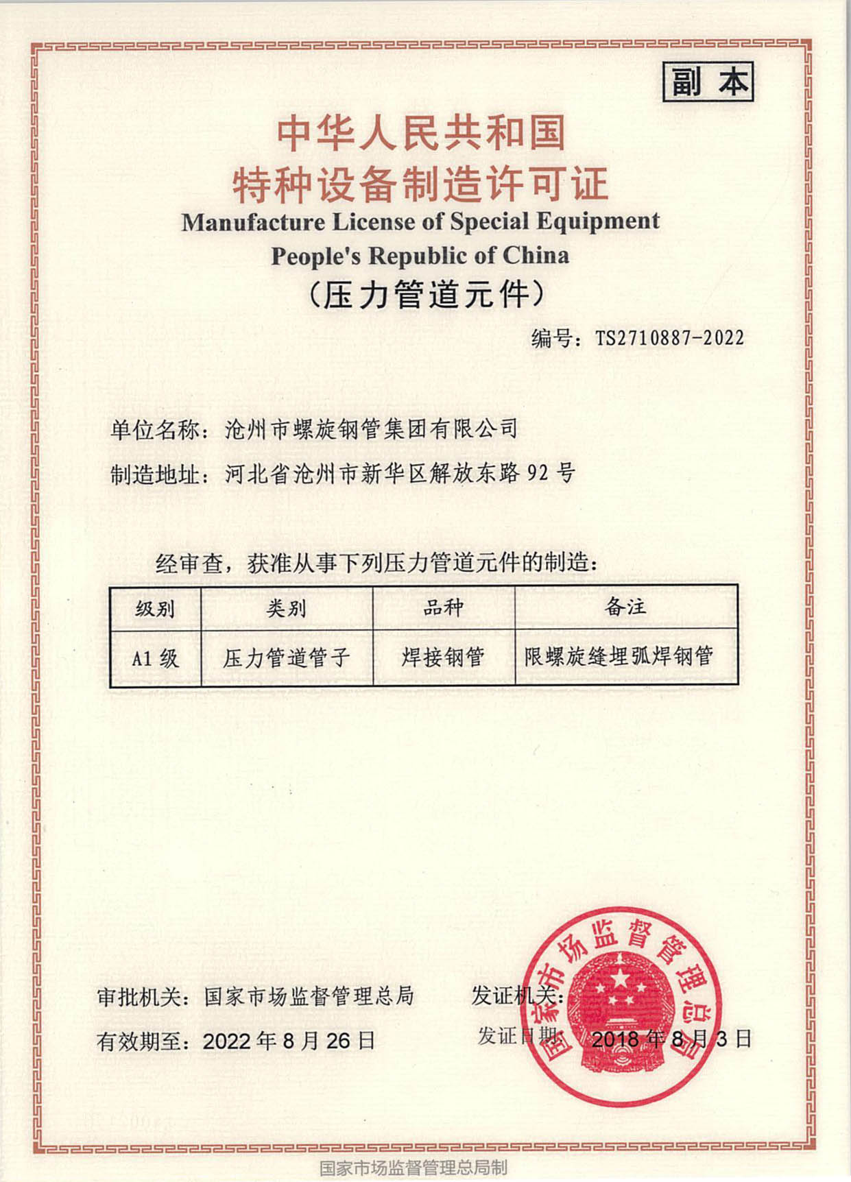 特種設(shè)備制造許可證